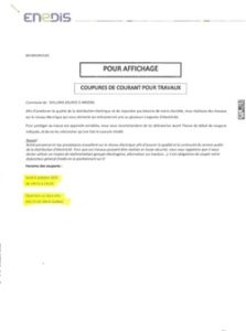 Afin d’améliorer la qualité de la distribution électrique et de répondre aux besoins de notre clientèle, nous sommes conduits à programmer des travaux qui entraîneront une ou plusieurs coupures d’électricité le :