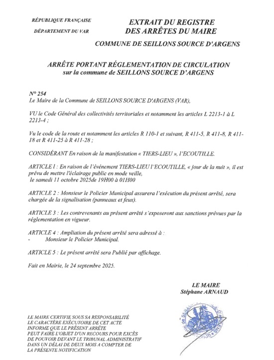 « En raison de manifestations « jour de la nuit » sur la voie communale organisée par le Tiers Lieu  » L’Ecoutille », le :