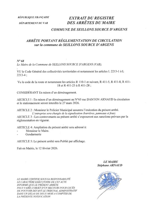 « En raison de l’intervention sur la voie communale pour un déménagement pour le compte d’un particulier, le :