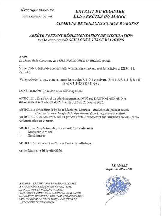 « En raison de l’intervention sur la voie communale pour un déménagement pour le compte d’un particulier, du :