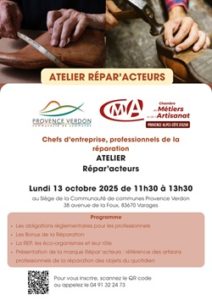 « Dans le cadre de son Programme Local de Prévention des Déchets Ménagers et Assimilés (PLPDMA), la CCPV organise un évènement, en coordination avec la Chambre des métiers à destination des professionnels de la réparation du territoire :