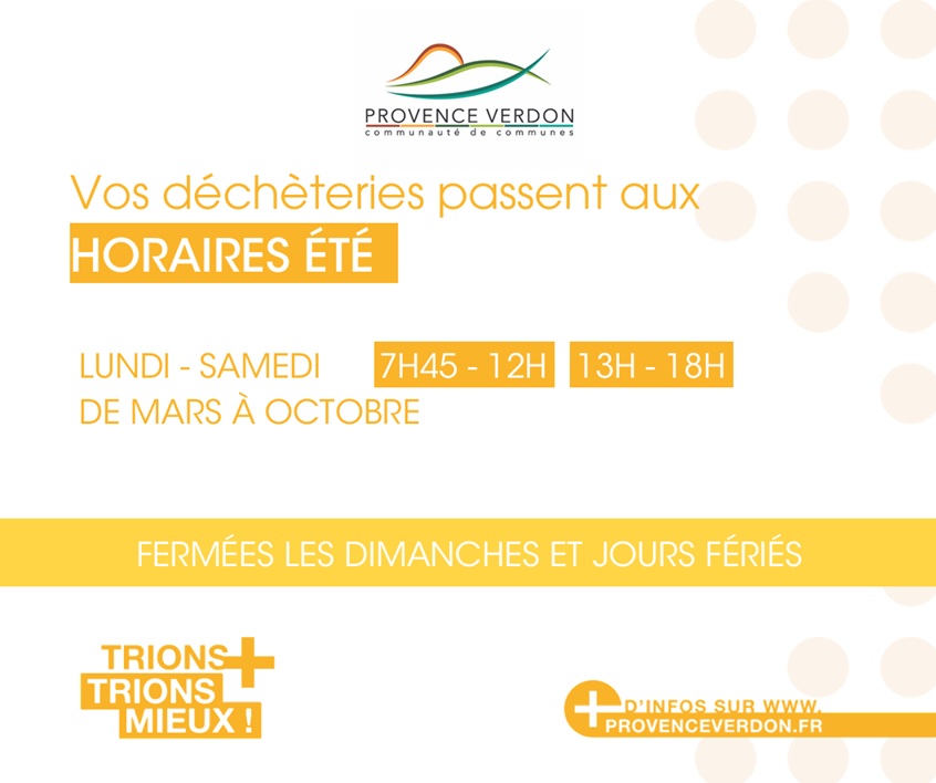 » A compter du 01 Mars, les déchèteries du territoire modifient leurs horaires d’ouverture, pour le passage aux horaires d’été.