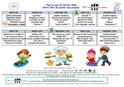La société Saint-Max Traiteur vous présente le menu de la cantine scolaire pour ce mois de février 2026