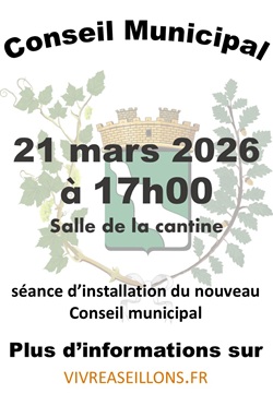 Suite aux élections municipales, les Seillonnais sont invités à venir nombreux assister à la séance d’installation du nouveau Conseil municipal qui se déroulera le :